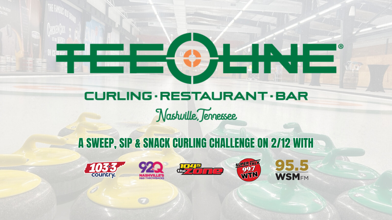 Get an App and 30 Minute Curling for our Sweep, Sip & Snack Curling Challenge at Tee Line Nashville on February 12th!